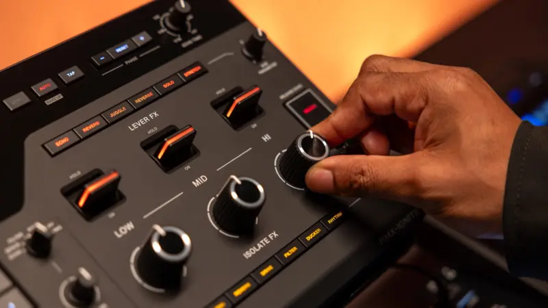 Introducing the DJM-V5, a next-generation 3-channel DJ mixer – Refined sound crafting and wireless monitoring in a compact unit